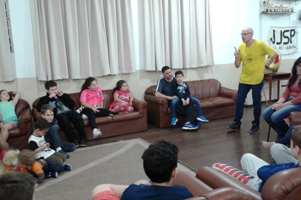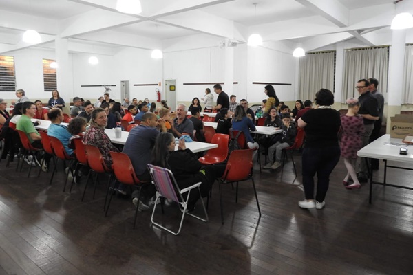O evento teve início às 17h30 com a acolhida a todas as famílias no salão da congregação e um gostoso chimarrão.
