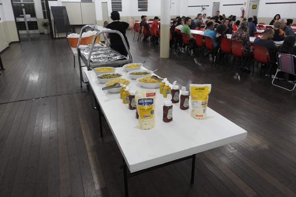 A janta foi um delicioso buffet de cachorro quente preparado com carinho pelos professores e pais das crianças.