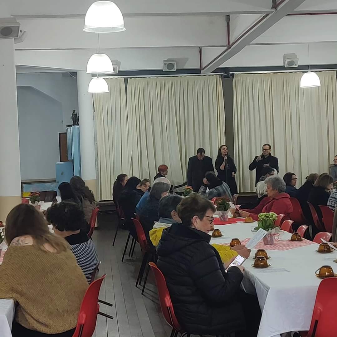 Cerca de 120 pessoas lotaram o salão da congregação e prestigiaram diferentes tipos de cucas e salgados. As cucas foram preparadas pelas mulheres do departamento.