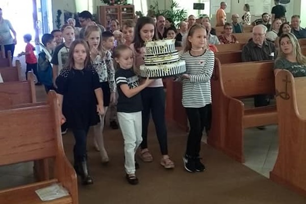 As crianças da Escola Dominical entraram no final da culto com um bolo e todos em conjunto cantaram o tradicional “parabéns a você” para esta querida congregação. Estiveram 170 pessoas presentes no culto.