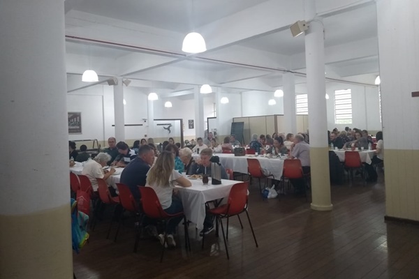 O almoço festivo foi organizado pelo grupo Trava de Porteira (churrasco) e pela Diretoria da CELSP e equipe (saladas, arroz, aipim). Estava tudo muito bem feito. Cerca de 140 pessoas almoçaram.