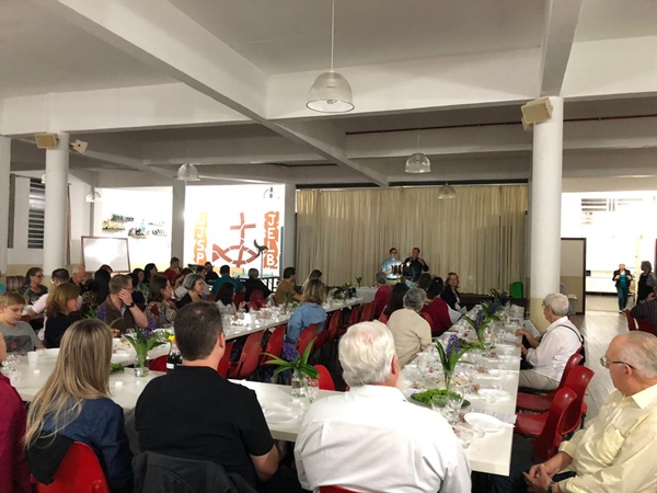 Na Quinta Feira Santa (18/04), reuniu-se cerca de 100 pessoas para relembrarem a última ceia realizada por Jesus com seus discípulos. Foi nesta celebração, que recorda a libertação dos israelitas da escravidão do Egito, que Jesus instituiu pela primeira vez a Santa Ceia. A Ceia Pascal teve o envolvimento de uma equipe afiada de assadores, responsáveis no preparo da carne de cordeiro, e nas Servas, Diretoria CELSP e equipe de funcionários, no preparo do salão, saladas, comida, bebida e sobremesa. O encerramento se deu com um processional à luz de velas no pátio da igreja e a Santa Ceia dentro do templo.