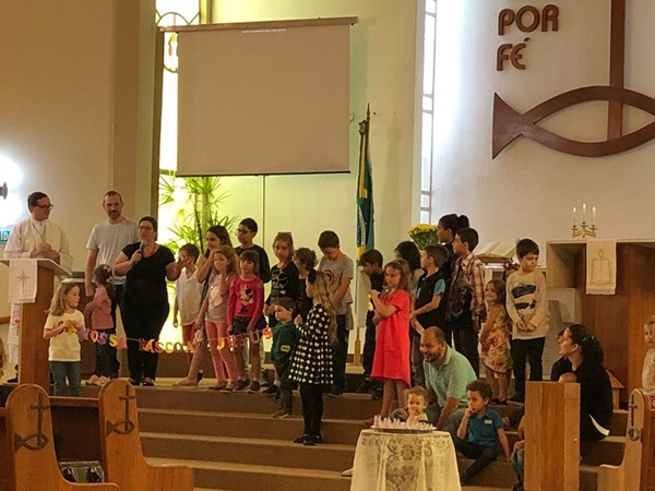 O Domingo de Páscoa (21/04), foi marcado pela alegria da Ressurreição de Jesus. O coral também se fez presente com duas lindas canções. As crianças no final também prestaram sua homenagem ao Salvador ressurreto. Houve a presença de 210 pessoas dentre os quais estavam 6 surdos.