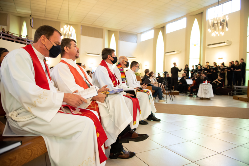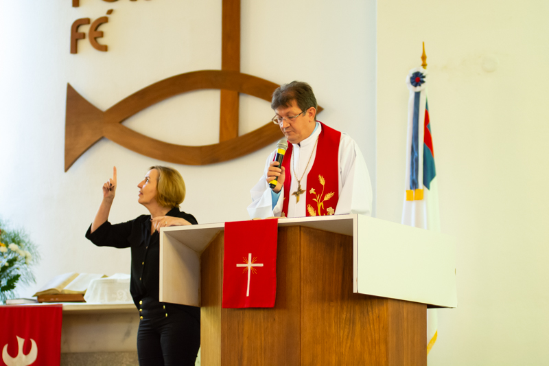 O pastor presidente da Igreja Evangélica Luterana do Brasil (IELB), Rev. Geraldo W. Schüler, em sua mensagem, trouxe a todos a lembrança dos grandes feitos de Deus realizados através de muitas pessoas.