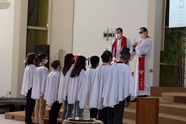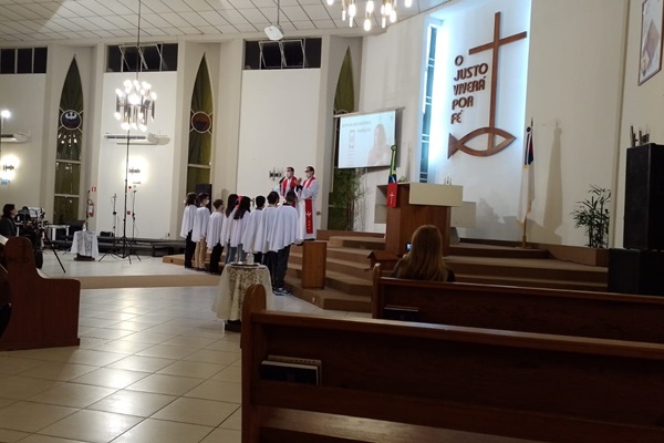 Os jovens que confirmaram a fé são: RAYSSA KAMINSKI BAPTISTA, MARCOS RODRIGO MARTINS CHAVES, LUCAS VILLAS BOAS PORTELLA, ARTHUR PERIUS HAEBERLINS, AUGUSTO MÜLLER BAUR, LEONARDO CANTO DE MORAES, ANTONY BITTENCOURT RODRIGUES e YASMINE KOLBE LUCAS.
