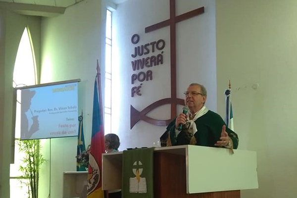 Novamente o pastor convidado para ser o pregador foi o professor e pastor, Dr. Vilson Scholz, que falou da ovelha perdida e da moeda perdida (Lucas 15.1-10) e da alegria do céu por um pecador resgatado por Deus. “A alegria do céu é a alegria que deve contagiar a igreja na terra”, disse o pastor Vilson.