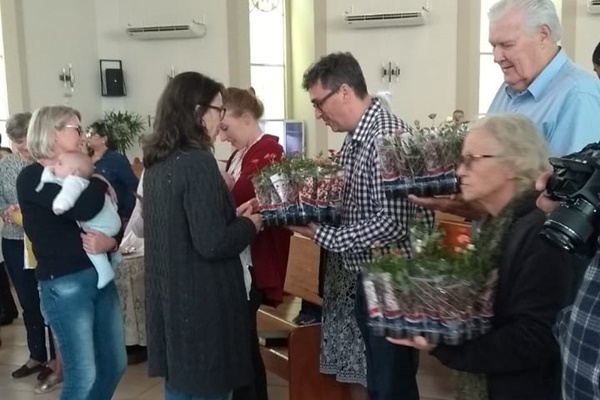 A diretoria da congregação também presenteou cada mãe com um vaso de mini rosas, desafiando cada uma a plantar esta flor.