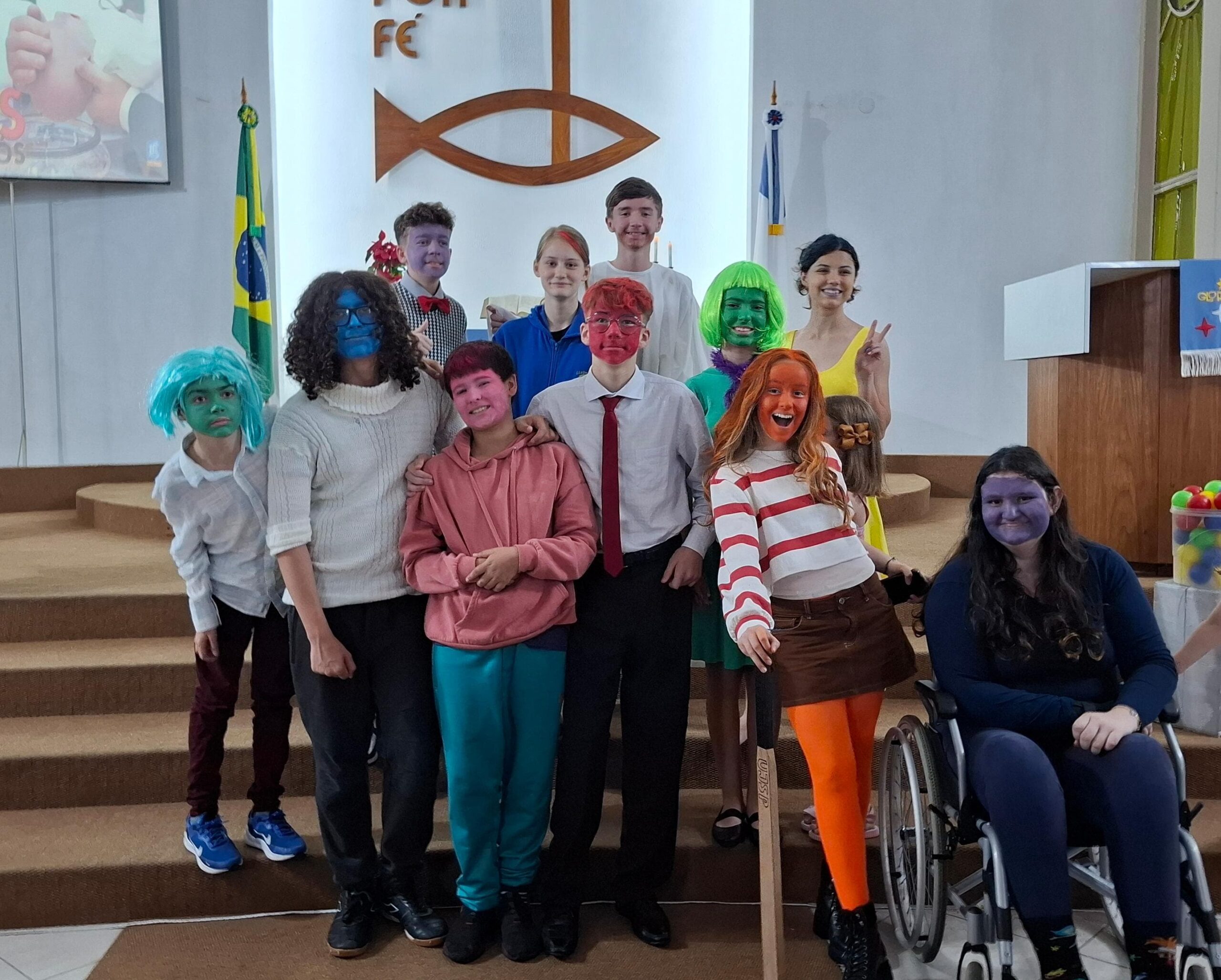 Aproveitando o filme “Divertidamente”, sucesso nos cinemas, que personifica as emoções que agem nas pessoas, a nossa juventude elaborou uma peça, mostrando como as emoções são influenciadas positivamente com a presença de Jesus e de sua Palavra.