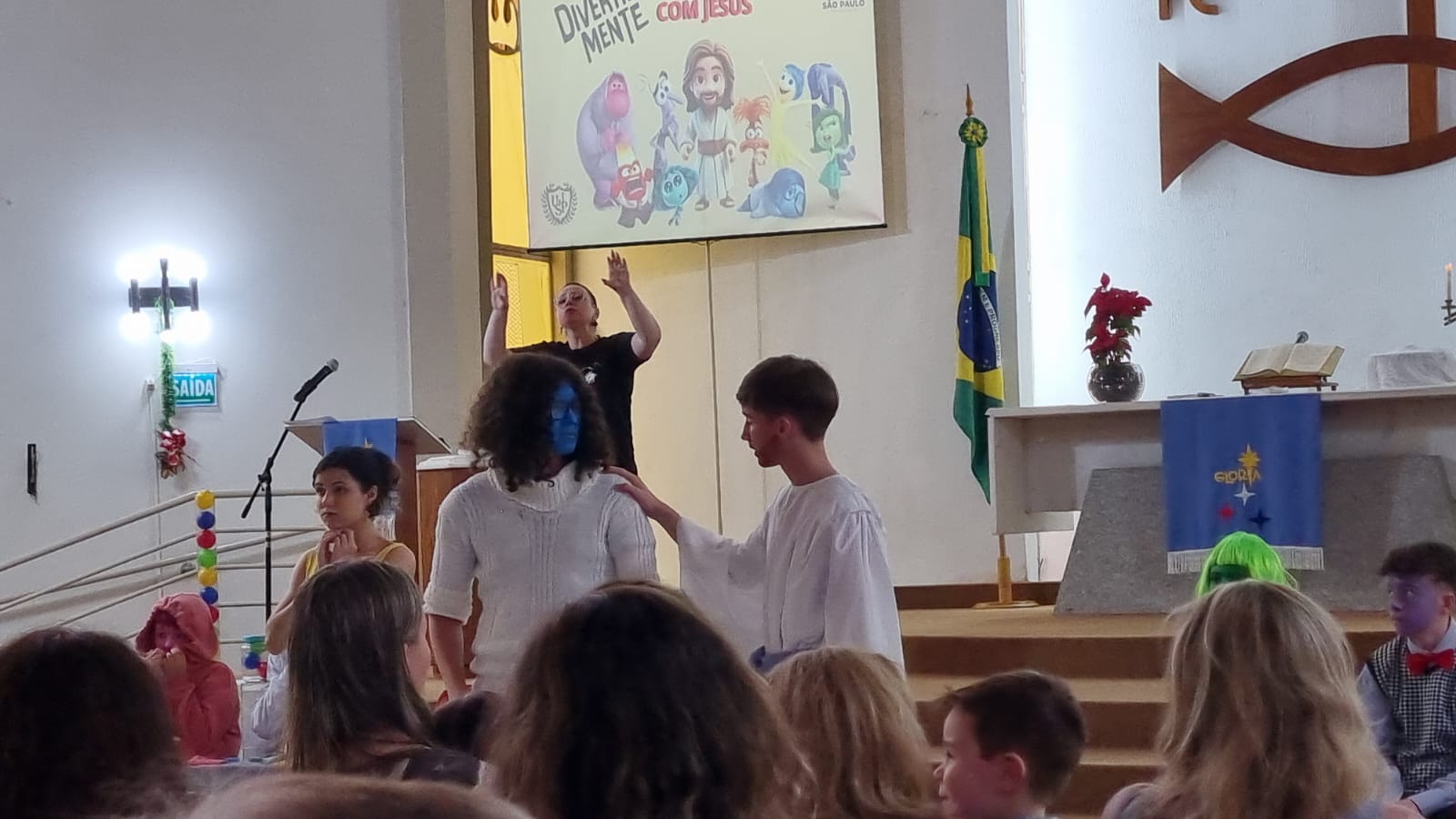 Por fim, no dia 07 de dezembro de 2024, a turminha trouxe a peça para a CELSP (Congregação Evangélica Luterana São Paulo) durante o culto das 18h. Muitas crianças estiveram presentes para prestigiarem a Alegria, o Tristeza, a Nojinho, o Raiva, o Vergonha, o Medo, o Inveja, a Tédio e a Ansiedade serem influenciadas e orientadas por Jesus e por sua Palavra.