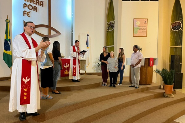 Já no segundo semestre (01/10/23), foram recebidos como membros por Profissão de Fé as seguintes pessoas: DANIEL LIMA KIELING, DEBORA GISLAINE DE OLIVEIRA PERES, GRAZIELA JATHAY LOPES PORATH, REGINA GUTIERRÍ SOARES e YASMIN BISINELLA SCHEFFER.
