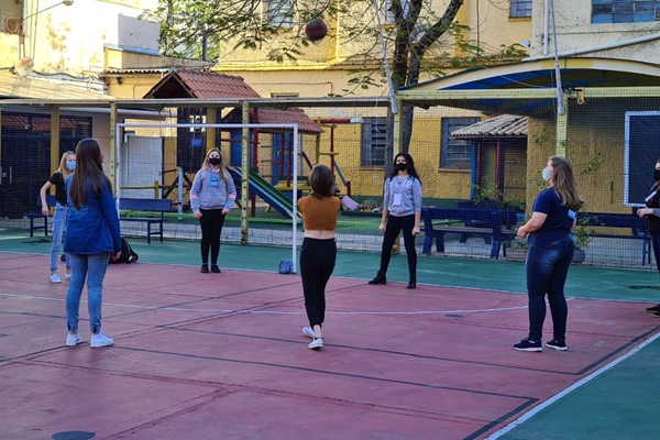 A confraternização aconteceu no pátio do Colégio Concórdia em diversas rodas de vôlei, futebol de mesa, basquete e ping-pong.