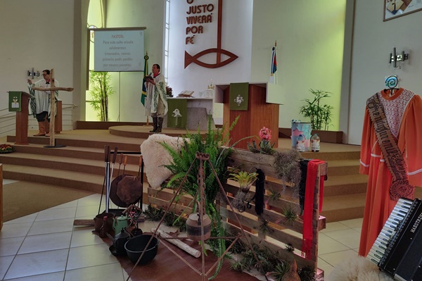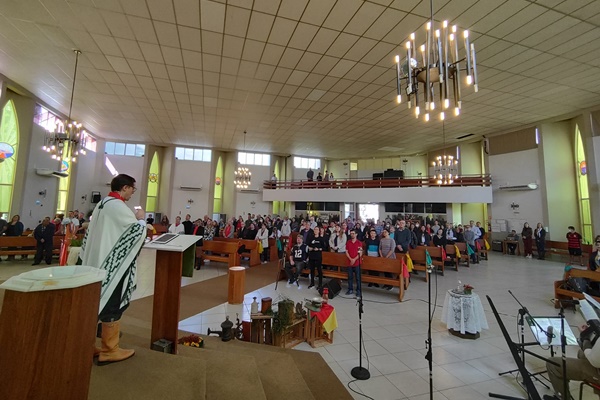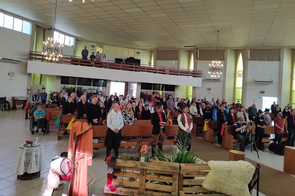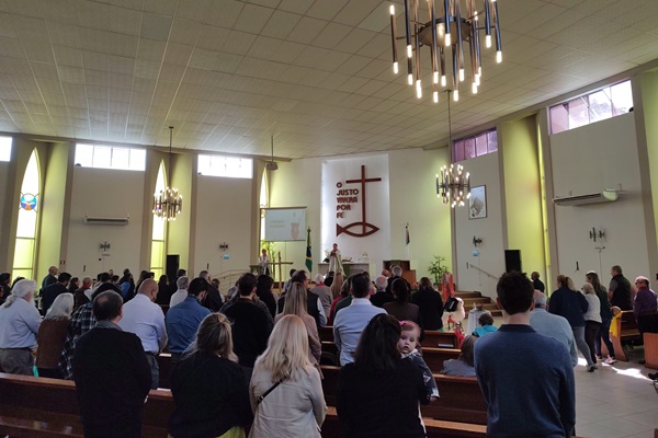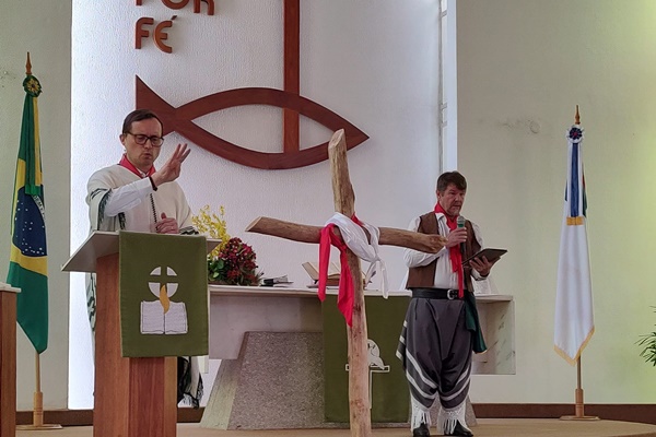 Ao som de gaita, violão, baixo e bateria, membros e visitantes foram convidados a louvar a Deus com melodias conhecidas do povo gaúcho.